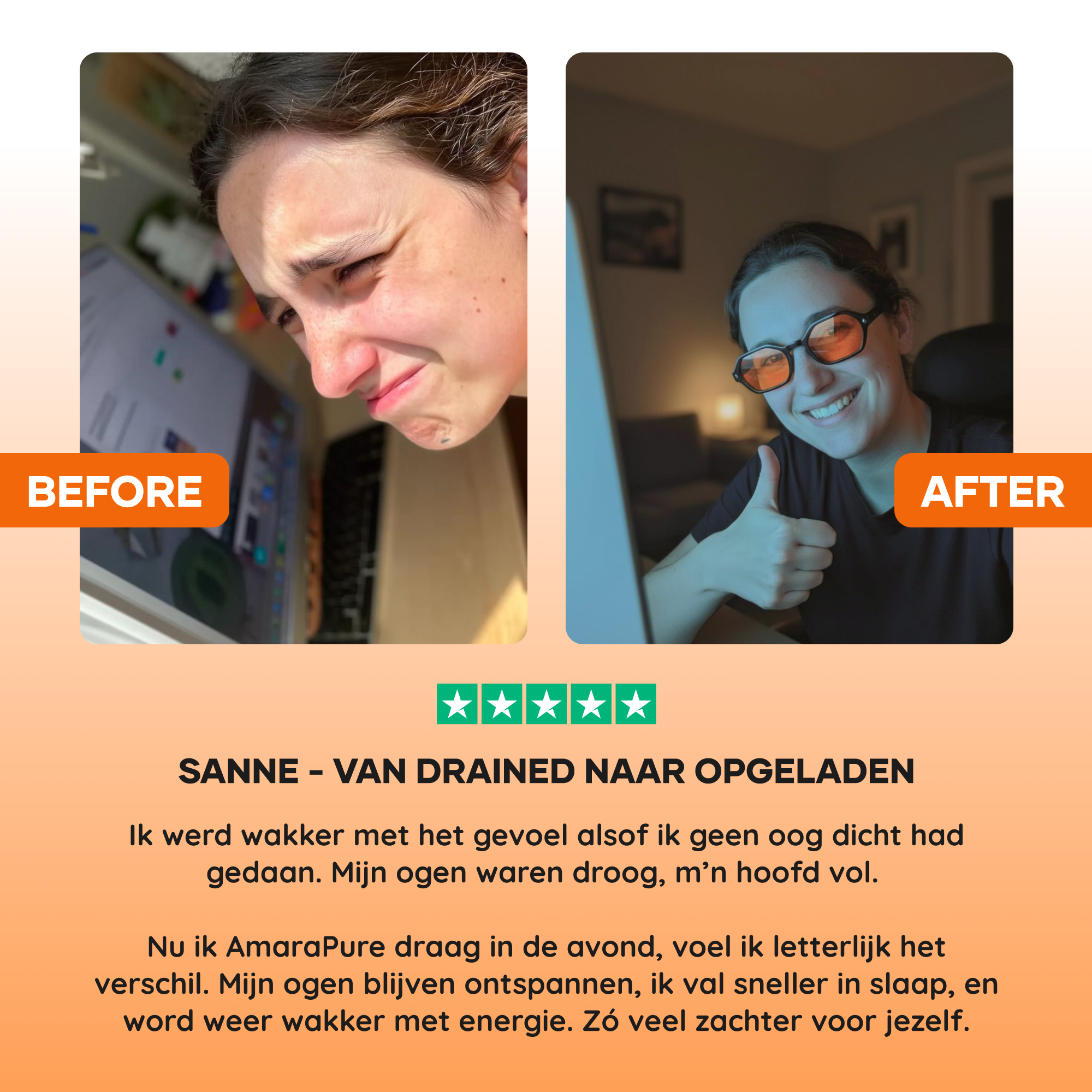 Onze blauwlichtbrillen bieden wetenschappelijk bewezen bescherming voor uw ogen en uw slaap. Ze zijn ideaal voor iedereen die veel tijd voor schermen doorbrengt, zowel overdag als 's avonds.