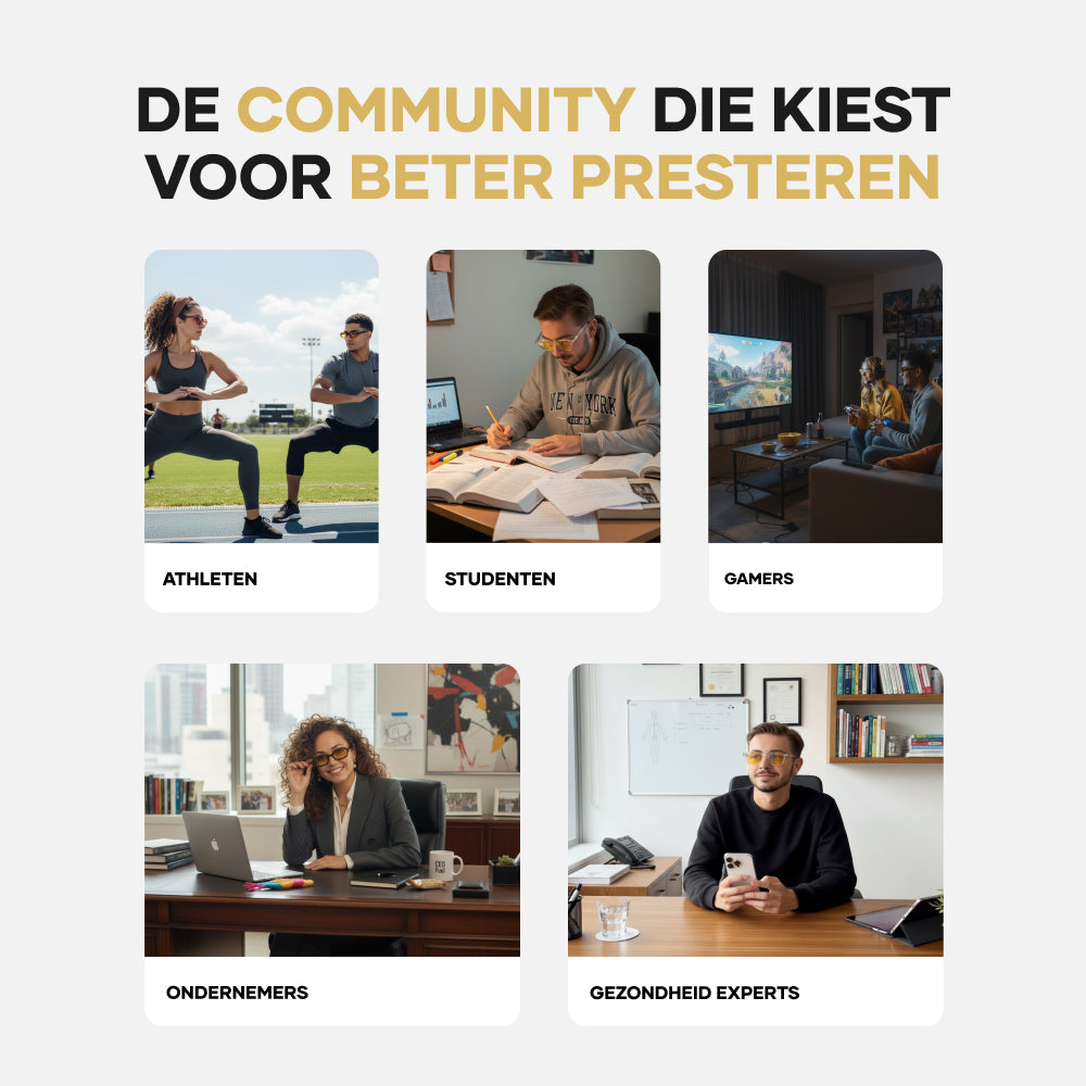 Onze blauwlichtbrillen bieden wetenschappelijk bewezen bescherming voor uw ogen en uw slaap. Ze zijn ideaal voor iedereen die veel tijd voor schermen doorbrengt, zowel overdag als 's avonds.