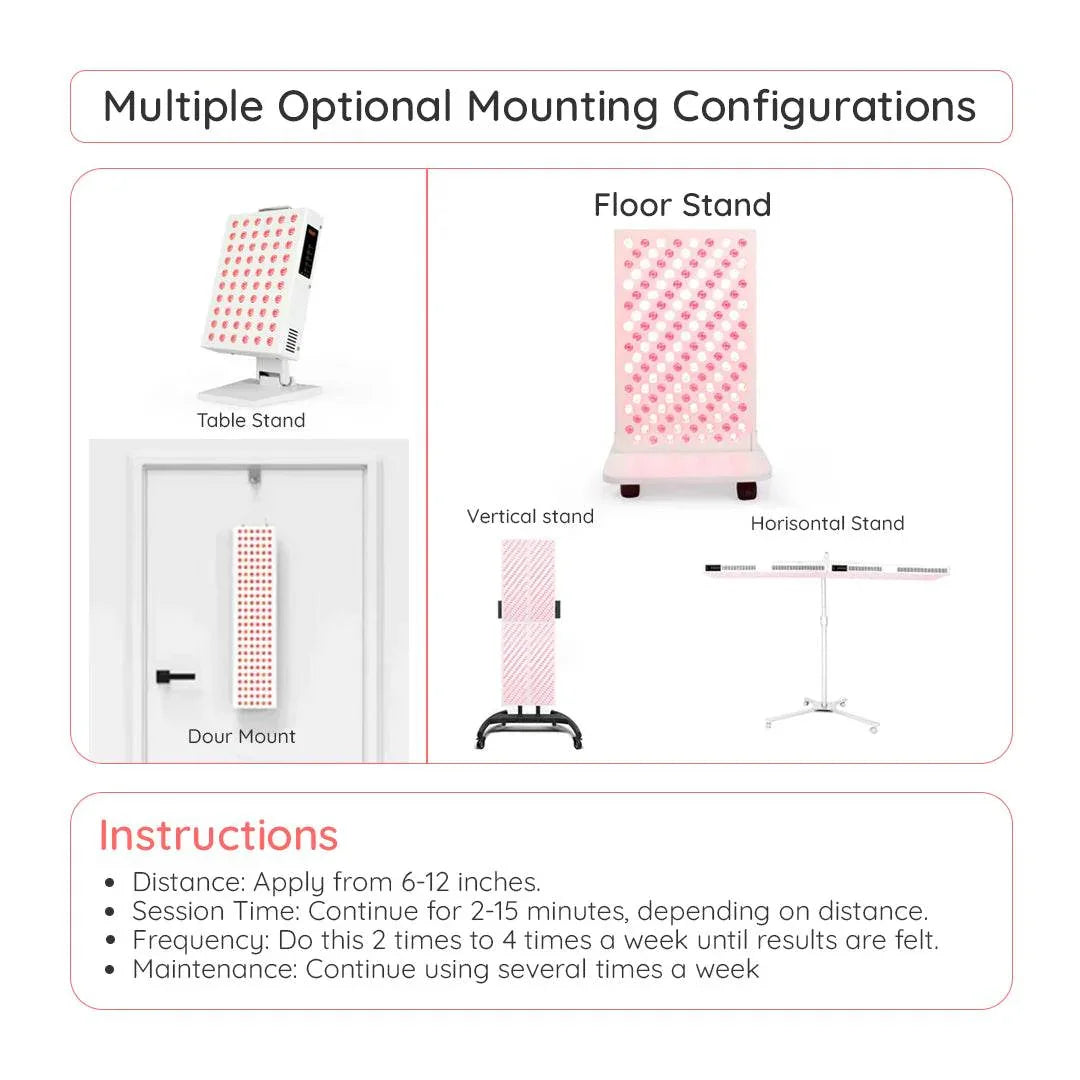 - Afstand & duur: 5–10 minuten per zone als start; bouw op naar 10–20 minuten per gebied. Houd 15–45 cm afstand volgens de handleiding. Start met 3–5 sessies per week.