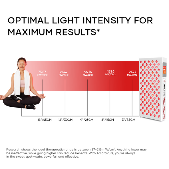 • Distance & duration: Start with 5–10 minutes per zone; build up to 10–20 minutes per area. Maintain a distance of 15–45 cm according to the manual. Begin with 3–5 sessions per week.