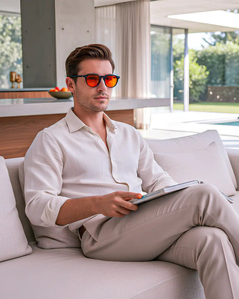 Bescherm je ogen tegen kunstmatig blauw licht. Voor betere focus en slaap. Midnight voor de avond en daygold overdag.