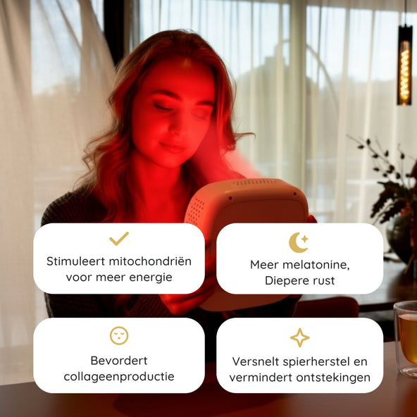 Krachtige, thuisgebruikbare roodlichttherapie die je huid, herstel en energie ondersteunt.