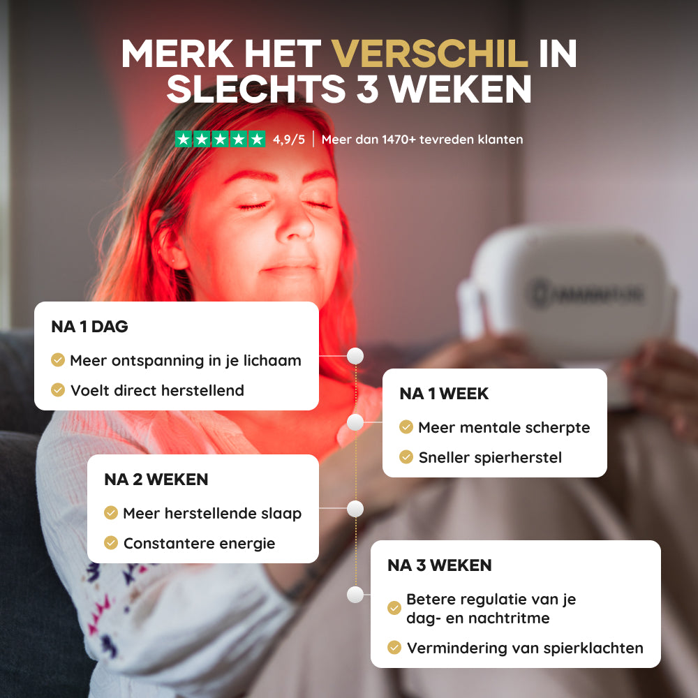 - Meer energie & betere nachtrust bij regelmatige sessies — korte dagelijkse behandelingen kunnen al verschil maken.