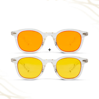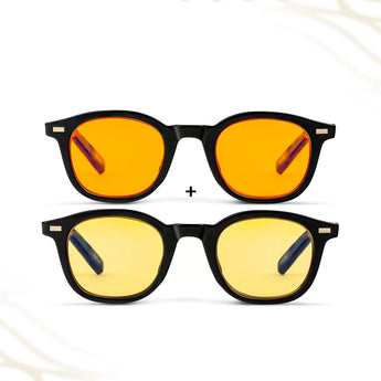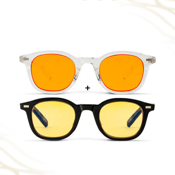 Met de AmaraPure All-Day Protection Bundle ontvang je zowel de Daygold als de Midnight blauwlichtbril. Samen bieden ze volledige bescherming voor je ogen, je focus en je slaap — precies op de momenten dat je het nodig hebt. Ideaal voor iedereen die veel tijd doorbrengt voor schermen, zowel overdag als in de avond.